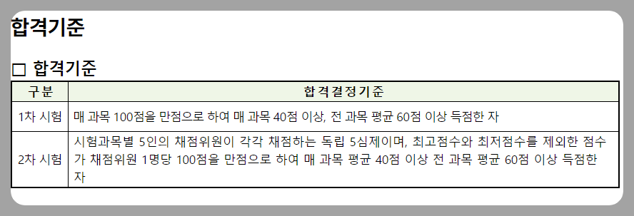 📢 💡 TIP: "필기시험은 6개 과목을 모두 과락 없이 평균 60점 이상 받아야 합격!"