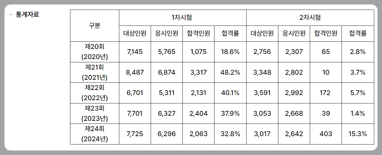 ✅ 필기 합격률: 약 15~20% (매우 어려움!)