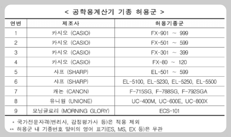 ✅ 허용되는 공학용 계산기 목록