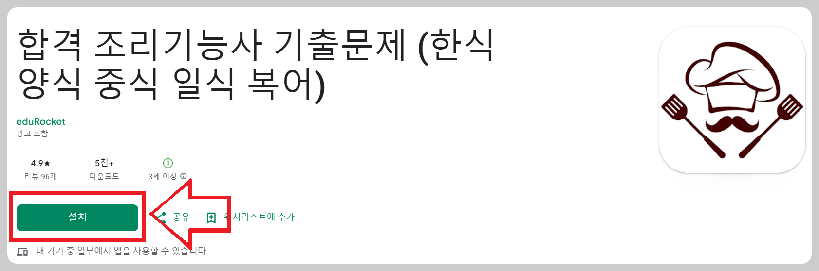 - Google Play 스토어에서 "합격 조리기능사"를 검색해 다운로드하세요.