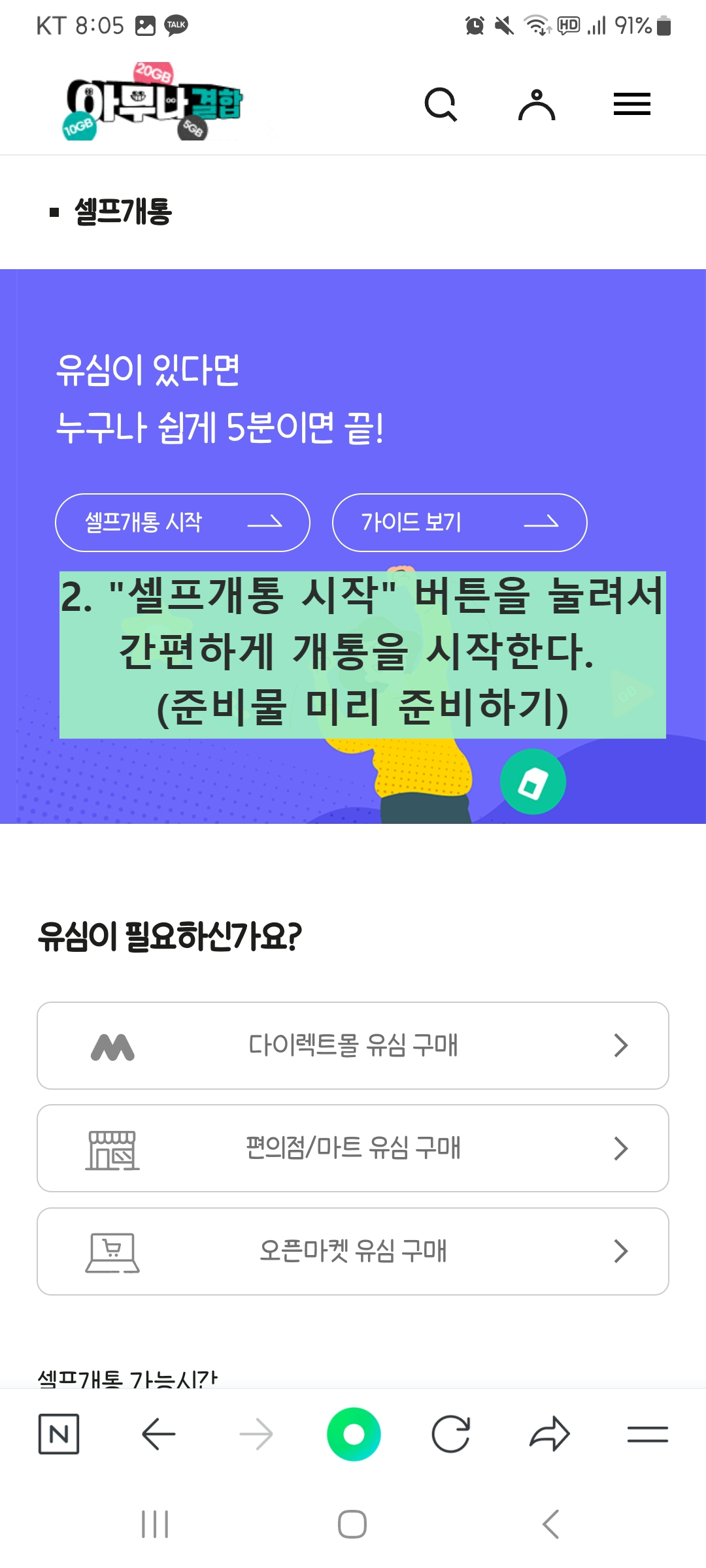 3. "셀프 개통하기"라는 문구에 접속하시면 됩니다.